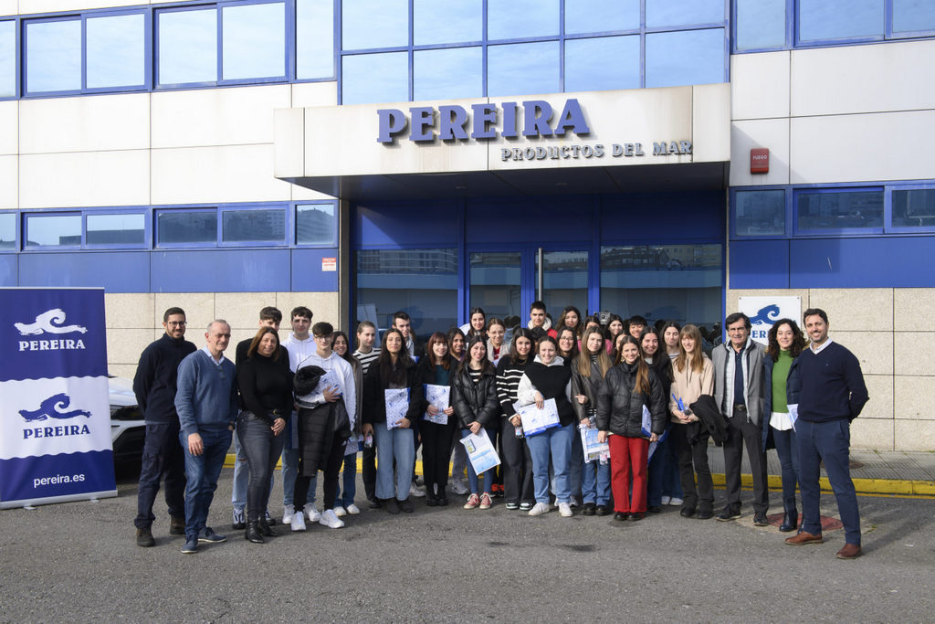 El directivo, acompañado por Silvia García, directora de Calidad, Álvaro Juncal, director de Producción, y Alberto de la Puente, jefe de turno de la planta, guió a los estudiantes a lo largo de todo el proceso de producción de la compañía, desde la entrada del producto congelado hasta su salida envasado para el consumidor final. Los alumnos pudieron visitar las distintas líneas de elaboración de productos del mar y aprender sobre el proceso de valor añadido del Grupo Pereira. Al concluir la jornada José Enrique Pereira, presidente del grupo, recibió a los estudiantes y compartió algunas palabras sobre la empresa.