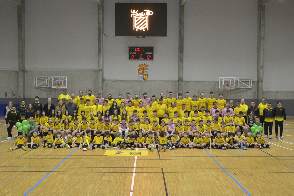El Alcalde de Baiona, Jesús Vázquez Almuiña, y la concejala de Deportes, Ana Iglesias Rodríguez, participaron ayer en la realización de la fotografía oficial de la temporada del Baíña Fútbol Sala. El Pabellón Municipal de Deportes de Baiona fue el lugar elegido en el que se hicieron las instantáneas por parte de V.S. Fotografía. Durante la jornada deportiva del domingo el Baíña F.S. lució un lazo verde sumándose a la campaña de la Asociación Española contra el Cáncer, que instaló una mesa informativa en la tarde del domingo en el Pabellón Municipal de Deportes.