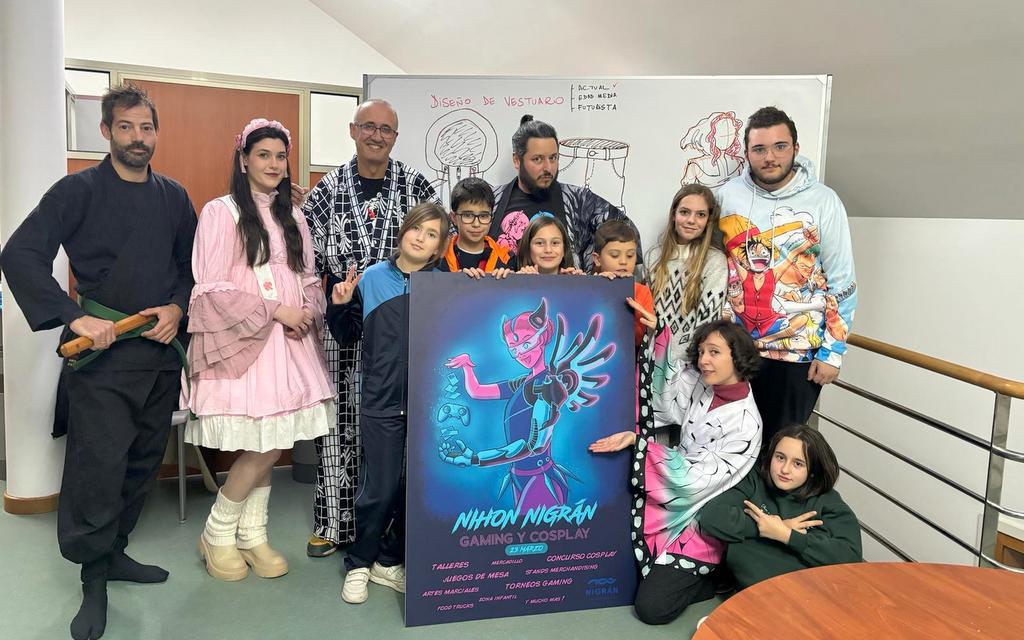 “La juventud de Nigrán demandaba un evento de este tipo y, precisamente, lo podemos ofrecer gracias a especialistas de la comarca que se volcaron con el Ayuntamiento para poder organizarlo”, explica el alcalde, Juan González, en referencia a David Míguez (quien regentó durante años un bar temático en A Ramallosa), la conocida cosplayer de la comarca Melanie, y “H” (nickname de un especialista en cartas de rol que se conocen como “Magic”). A ellos tres se suma la propia Escuela Municipal de Cómic de Nigrán, con mucho alumnado interesado en el mundo manga y anime (tipo de cómic e ilustración propios de Japón), con su directora Coral Martínez a la cabeza. De hecho, ella fue la responsable de realizar el cartel “Nihon Nigrán”. “Me basé en la estética cyberpunk, donde los colores neón recuerdan a un universo digital y futurista; la figura femenina es protagonista y lleva complementos propios del cosplay y el manga (un brazo robótico y alas) y entre sus manos invoca un mando de videoconsola y unas cartas Magic, así todo lo más relevante de este evento queda plasmado en una sola imagen”, resume.