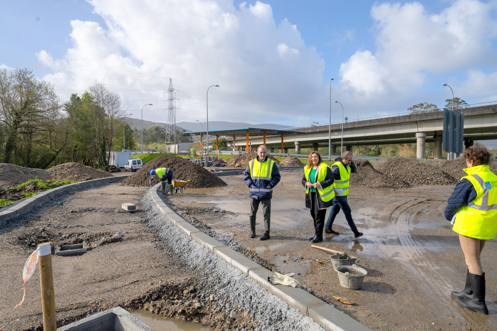 Ana Ortiz también añadió que se instala una red de drenaje para la recogida de pluviales, la cual conectará a través de cuneta con el río Miñor, y se instalará iluminación pública y vídeo vigilancia.