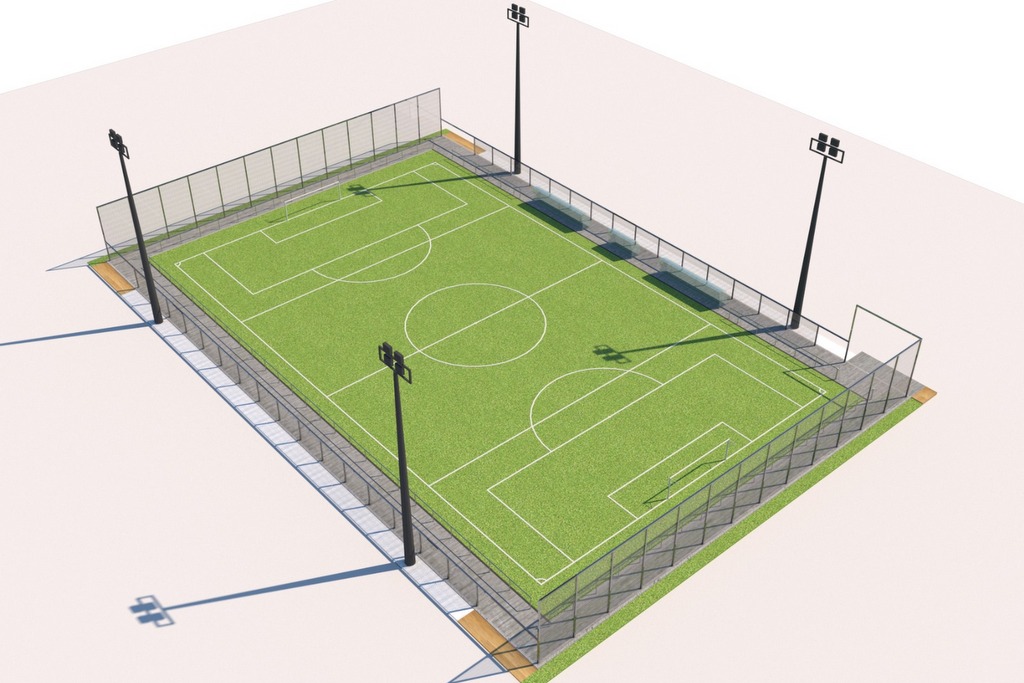 Así, el proyecto consiste en emplear ese terreno para habilitar con la misma orientación, y en su límite Este, un nuevo campo de fútbol 7 de 50×30 metros acorde en su totalidad con la normativa NIDE del Consejo Superior de Deportes, por lo que será un campo de fútbol 7 homologado. El terreno de juego será césped sintético de última generación, de 60 mm de espesor, y con el mismo pavimento dispondrá de bandas exteriores de 1,5 metros y longitudinales de 2,5 metros. Esta ubicación del campo de fútbol permite que el espacio de juego de bolos se mantenga en la misma ubicación sin ningún tipo de afección, así como la pista deportiva vallada y el parque infantil (la parcela total donde se sitúa el Centro Cultural A Camoesa es de 12.504 m² y la superficie de actuación aproximada no supera los 3.000 m²). Además, la instalación será iluminada mediante 8 grandes focos de tecnología LED en aras de la mejora de la eficiencia energética.