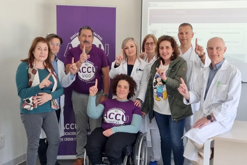 La Unidad de Enfermedades Inflamatorias Intestinales (UEII), del Servicio de Aparato Digestivo del Hospital Álvaro Cunqueiro, y la Asociación de Crohn y Colite Ulcerosa de Vigo (ACCU-Vigo), vienen de celebrar hoy el Día Mundial de la Enfermedad Inflamatoria Intestinal, para el cual diseñaron una serie de actividades para la difusión de los pormenores de estas dolencias al público en general y, en especial, a las y a los pacientes de estas enfermedades crónicas.