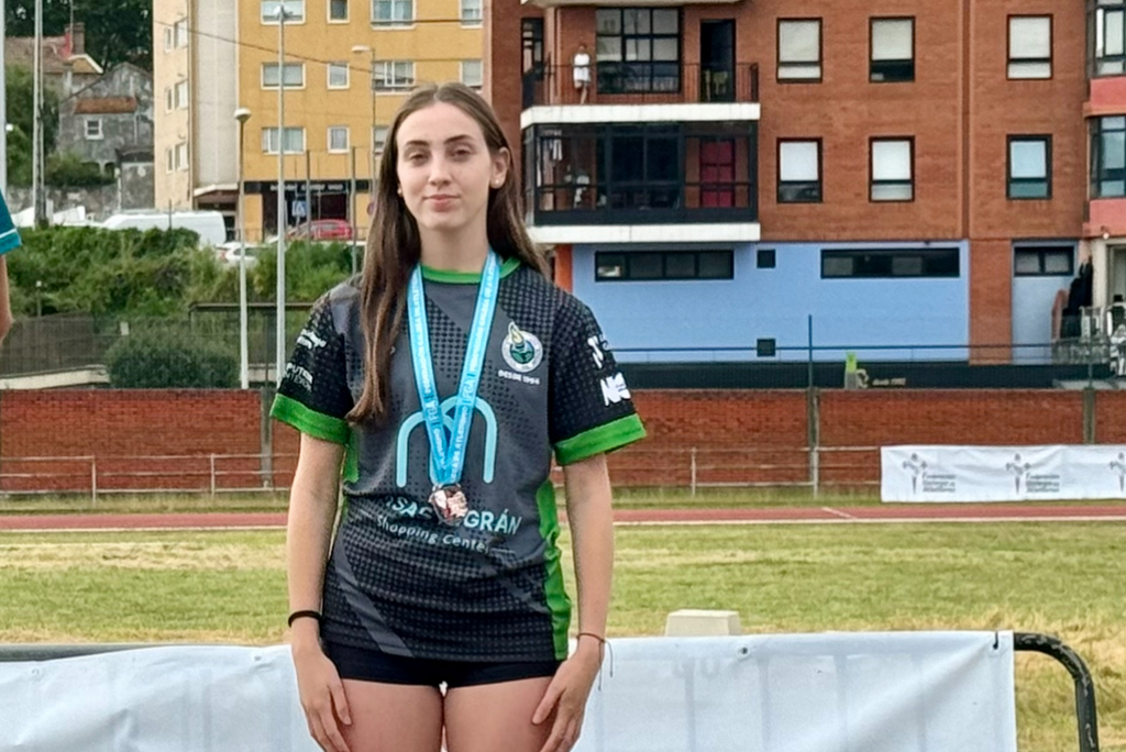 La atleta de la Sociedad Atlética Val Miñor Daniela Blanco consiguió el tercer puesto y la medalla de bronce en los 800 metros lisos del Campeonato de Galicia Sub-18, celebrado ayer en Balaídos (Vigo).