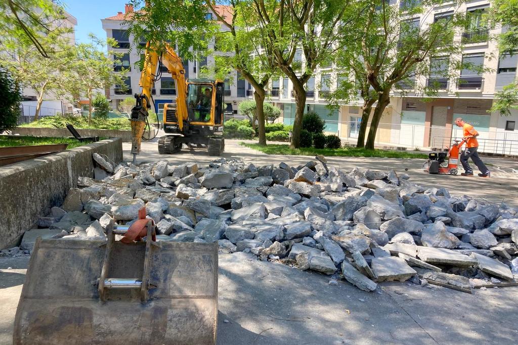 A intervención comprende un redeseño dos itinerarios peonís e a situación dunha bancada inserta no actual manto vexetal da zona noroeste aproveitando o salto de cota (ao carón da Biblioteca). Esta nova bancada lonxitudinal estará orientada cara un espazo central na praza que será unha fonte lúdica con 9 chorros para o xogo infantil pero que, ao mesmo tempo, se adaptará perfectamente como escenario natural ao aire libre para posibles actuacións ou contacontos. Paralelamente, e tamén aproveitando o forte desnivel, instalarase un tobogán de aceiro inoxidable ao lado das novas bancadas. Co fin de complementar o equipamento para os máis pequenos tamén se prevé no lateral este 3 camas elásticas enrasadas coa superficie e un área rectangular de montículos de caucho. Ademais, a remodelación inclúe unha calistenia para facer exercicio físico ou un recuncho especial para o “book-crossing”.