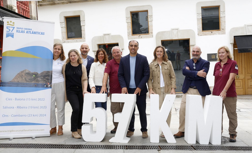 En su intervención, Beatriz Alvariño destacó que la Triple Corona Illas Atlánticas es la prueba de natación a nivel nacional con mayor dificultad técnica ya que cada año se celebra en una ría diferente de las Rías Baixas (Vigo, Arousa y Pontevedra), cada una con sus características de corrientes, temperatura del agua, etc., con salida desde tres islas distintas del Parque Nacional das Illas Atlánticas (Cíes, Sálvora y Ons) y con tres puntos de llegada diferentes (Baiona, Ribeira y Combarro).