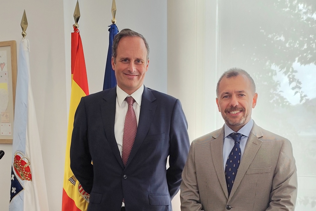 El presidente de la Autoridad Portuaria de Vigo, Carlos Botana, mantuvo esta mañana una reunión de trabajo con el Cónsul General del Uruguay en Galicia, Ramiro Rodríguez. Durante el encuentro, que sirvió para hacer balance de la visita realizada por una delegación del Puerto de Vigo al país el pasado mes de marzo, y donde se selló un acuerdo de colaboración con la Administración Nacional de Puertos con el objetivo de compartir y transferir la experiencia acumulada por ambas partes y promover programas de intercambio de conocimientos, permitiendo mantener una relación fluida y permanente, el máximo responsable portuario y el Cónsul también abordaron la próxima escala del buque escuela uruguayo “Capitán Miranda”, que llegará al Puerto de Vigo el próximo 25 de julio, con motivo de su participación en la 3ª edición del festival Iacobus Maris Experience, y donde compartirá muelle con el barco museo Hidria Segundo, el remolcador también a vapor, San Esteban, la carabela Vera Cruz o la fragata Shtandart.