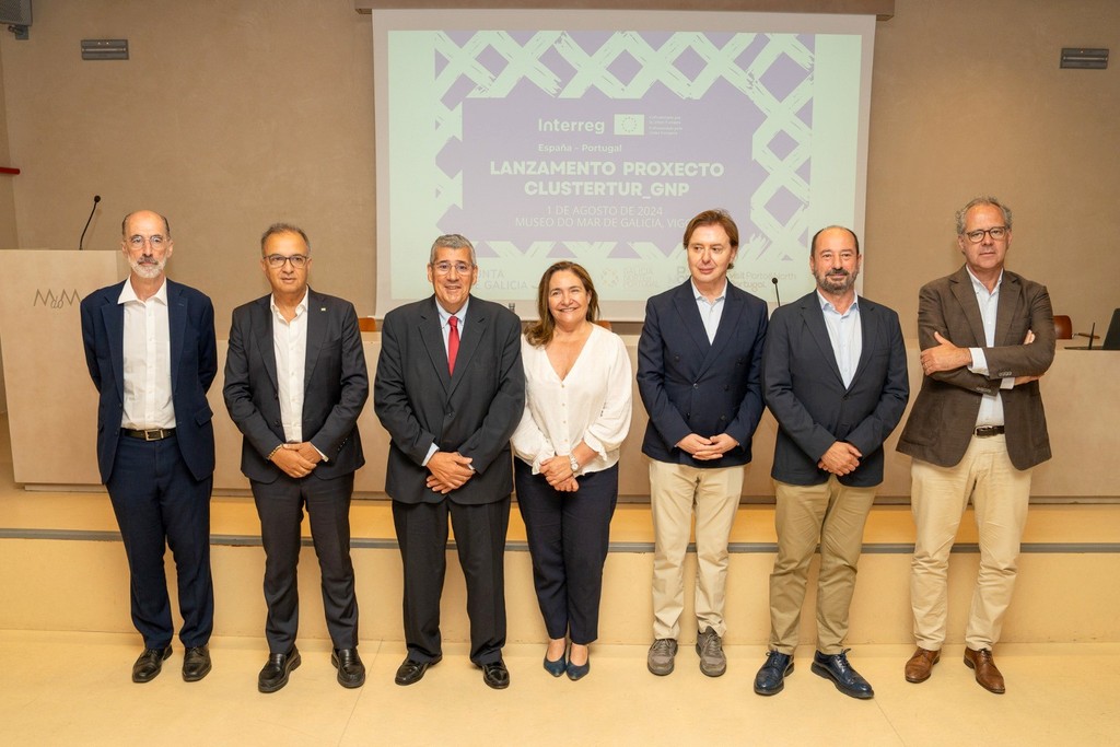 El director de Turismo de Galicia, Xosé Merelles, el director xeral de Relacións Exteriores e coa Unión Europea, Xesús Gamallo, y la delegada territorial de la Xunta en Vigo, Ana Ortiz, participaron hoy en el Museo del Mar de Galicia en la presentación del proyecto europeo Clustertur_GNP, que posibilitará la creación del primer Clúster Transfronterizo de Turismo Galicia-Norte de Portugal como herramienta para reforzar la colaboración público-privada en la Eurorregión Galicia-Norte de Portugal en el ámbito turístico.