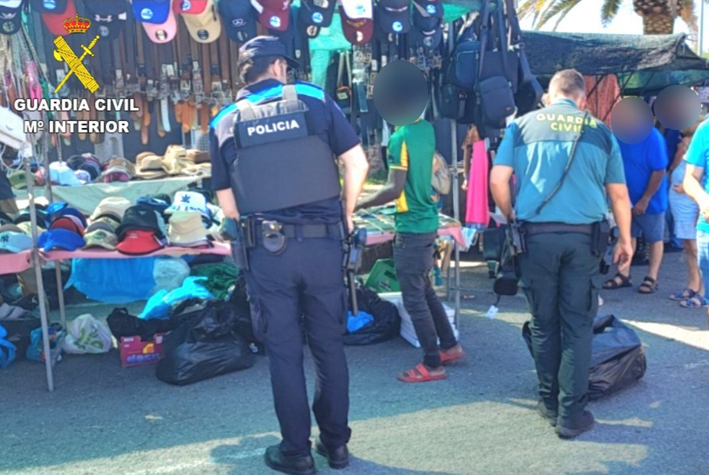 La Guardia Civil de Sanxenxo en estrecha colaboración con la Policía Local investigan a 6 personas en el mercadillo de Portonovo-Sanxenxo, por un supuesto delito contra la propiedad industrial por la venta de productos falsificados.