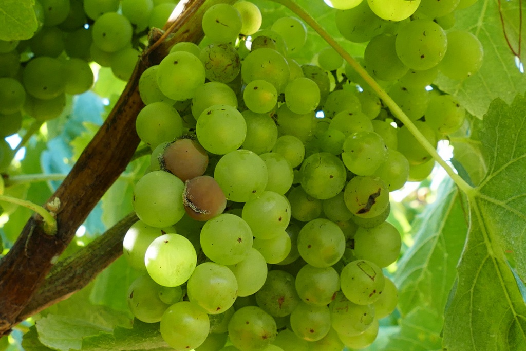 El personal de la Estación Fitopatolóxica Areeiro, centro investigador de la Diputación de Pontevedra, recomienda mantener la vigilancia ante la posible aparición de botritis en las uvas ya que, si van incrementando los azúcares este hongo tiene mayores probabilidades de instalarse, y también si hay heridas en los granos. En este sentido, los técnicos observaron esta semana en diferentes zonas de la comarca de O Rosal, racimos de loureira con desgarros longitudinales en la piel que enseguida se llenaron de micelio del hongo, lo que es normal teniendo en cuenta la sensibilidad de esta variedad. Las precipitaciones y la humedad relativa muy elevada por nieblas, lloviznas, etc. unidos a unas temperaturas altas son otros factores que favorecen a este hongo oportunista, aparte del varietal y de las heridas. Por eso hay que mantenerse alerta y continuar también las labores culturales que favorezcan la ventilación de las uvas, pues en algunas viñas en las que nace agua o que están siendo regadas en exceso, el desarrollo vegetativo y también de las hierbas de la cubierta puede favorecer la aparición del hongo
