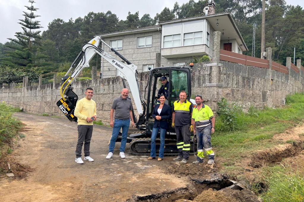 La alcaldesa de Mos, Nidia Arévalo, y sus tenientes de alcalde, Camilo Grandal y Leo Costas, visitaron las obras de acometida de la red de saneamiento en el Camino de Ansar que desde el Ayuntamiento se están realizando con fondos propios municipales, y en las que se está estrenando la nueva mini excavadora que la administración local adquirió gracias a la concesión de una subvención, a través de la Línea 1 del Plan +Provincia de la Diputación de Pontevedra. El importe de la ayuda, que financia la totalidad del importe de la maquinaria, asciende a 60.560,50 euros.