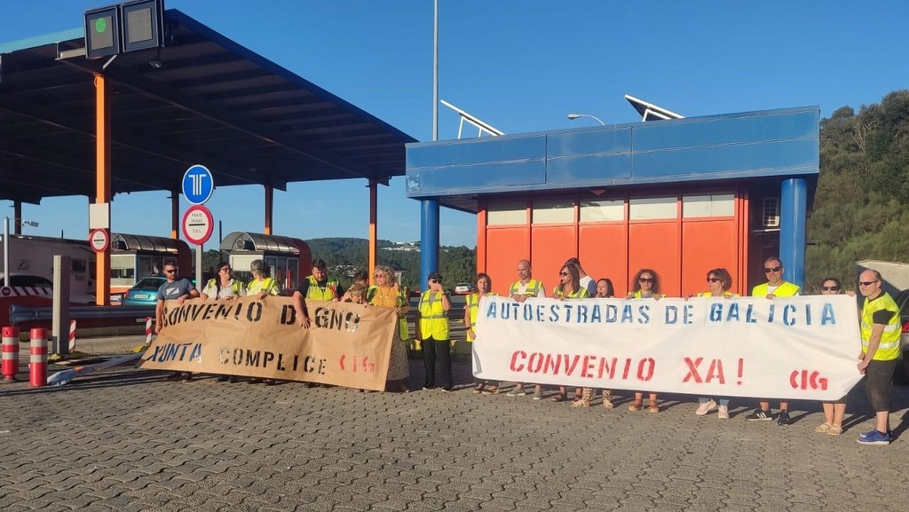 Precisamente para denunciar la precariedad que padecen y reclamar un convenio digno un grupo de personas trabajadoras de Autoestradas de Galicia llevó a cabo varias movilizaciones convocados/as por la CIG para denunciar que “los salarios son muy bajos, y el personal desarrolla su trabajo en turno de día, tarde y noche y cualquier día de la semana; y sufre un elevado nivel de estrés, dado el tráfico que circula por la autopista, además de tener que hacer uso de su coche particular”.