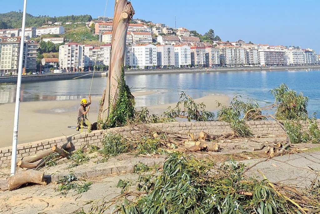 El Concello de Baiona informa que, entre las labores de poda que se están realizando, ayer se produjo la tala de una especie arbórea denominada eucaliptus globulus “porque tenía un gran riesgo de caída ya que era un árbol de gran porte y dimensiones, estaba a escasa distancia de las casas, tenía un enraizamiento dudoso ya que estaba en zona de rocas, y por las inclemencias meteorológicas en la zona, ya sean temporales o fuertes lluvias”.