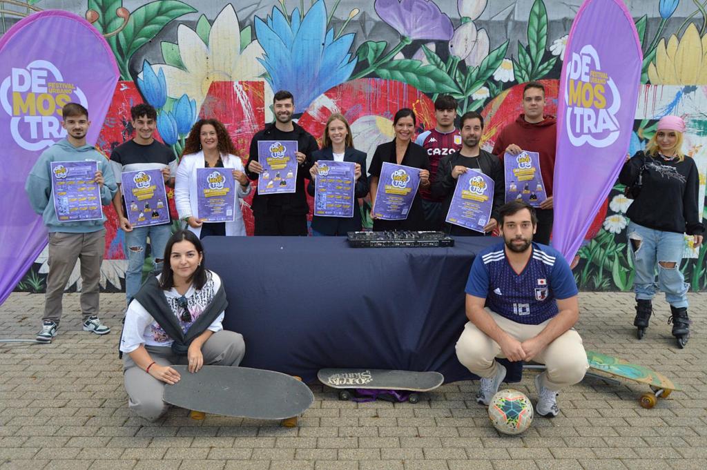 Durante la presentación del evento celebrada este viernes Arévalo, Meneses y Loureiro estuvieron acompañadas de Pablo Castiñeira, director de Vella Escola, entidad encargada de organizar y coordinar los talleres que se llevarán a cabo durante el festival, Dj Pitty, director de la Escuela de DJ de Mos y Dj que va a actuar en el DeMostra; junto con otros DJs que participarán en el festival, así como algunos de los competidores de las diferentes disciplinas sobre ruedas que se podrán ver el próximo fin de semana en Mos.