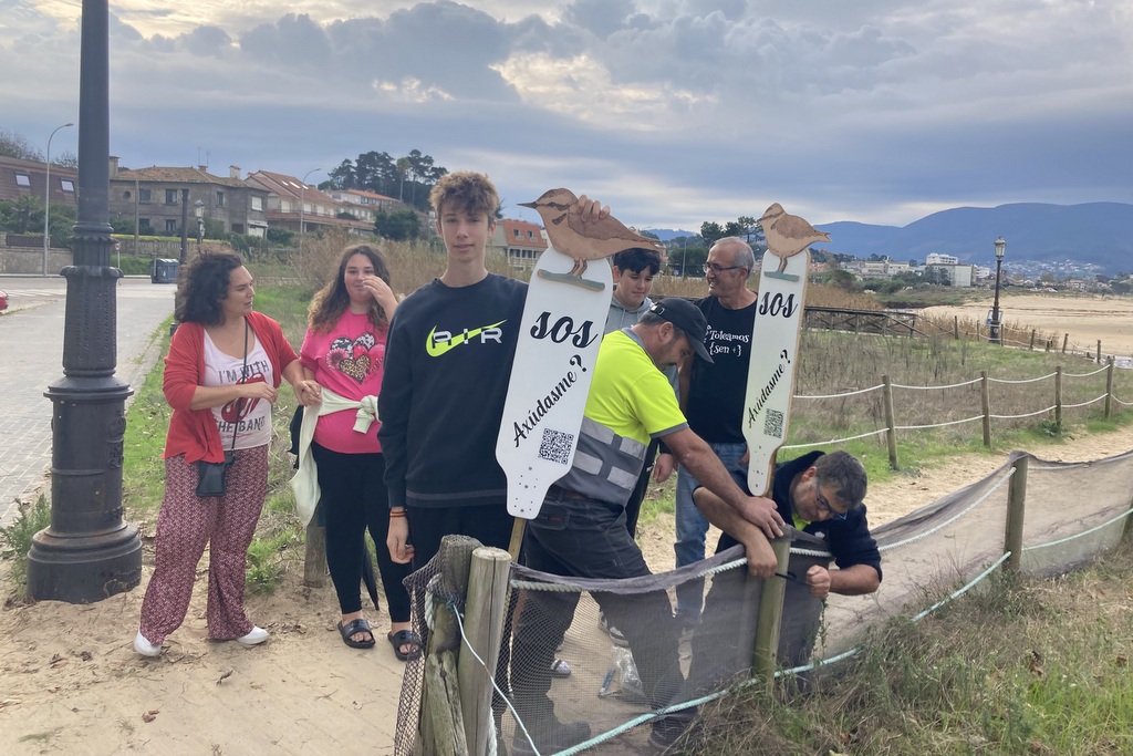 El Ayuntamiento de Nigrán une fuerzas con el CEE de Panxón para proteger a la píllara de las dunas, especie en peligro de extinción que subsiste en Playa América. Así, desde ayer, esta zona dunar cuenta con cuatro paneles informativos específicos situados en los principales accesos al arenal y que informan mediante un enlace a un código QR desde cómo identificar a esta ave hasta los consejos para no perturbar su presencia. Absolutamente todo, desde el propio panel (construido a base de monopatines reciclados en su taller de carpintería y con un relieve de una píllara), hasta la información vinculada (traducida al gallego, castellano e inglés) fue elaborada por los 20 alumnos que conforman el Centro de Educación Especial de Panxón, dedicado a chavalada desde Primaria a ESO con trastornos graves de conducta procedentes de toda Galicia y que están aquí en régimen de internado.