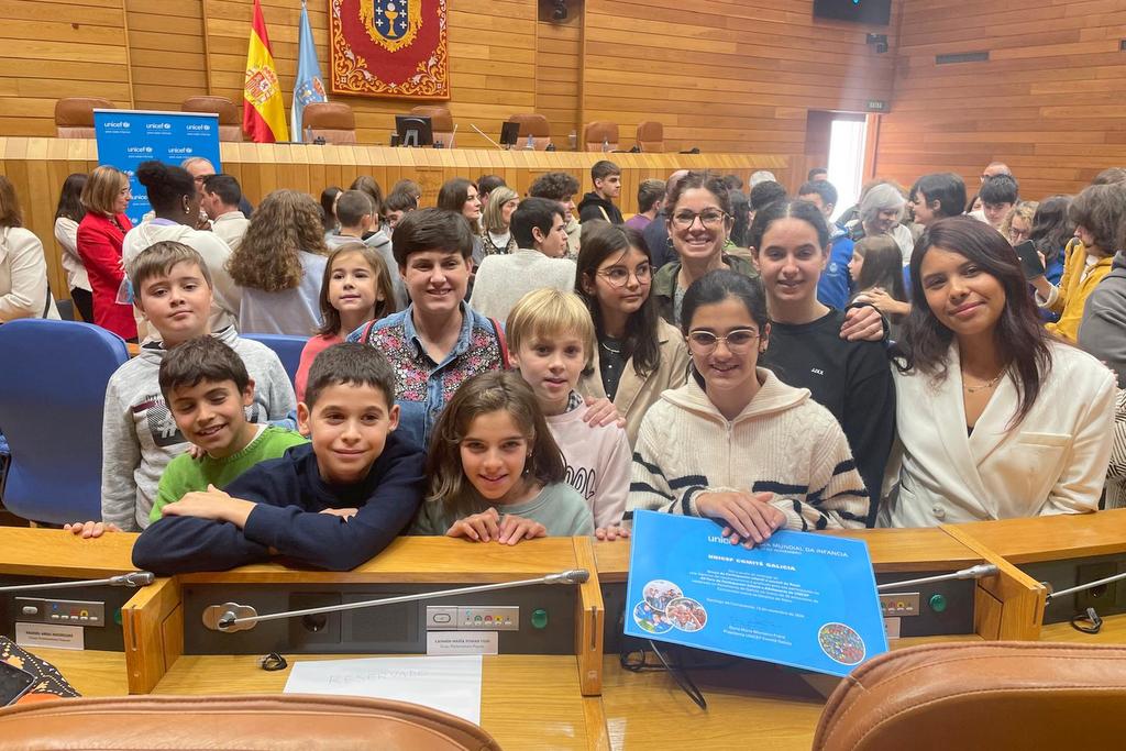 El grupo de participación infantil y juvenil de O Rosal hizo hoy de altavoz de la juventud rosaleira en el XII Foro Infantil de Unicef del Parlamento de Galicia, un encuentro celebrado este martes en Santiago de Compostela en el que compartieron experiencias con niños, niñas y adolescentes de los consejos locales de participación de A Laracha, Viveiro, Burela, Teo, Moaña, Tui, Nigrán, Ponteareas, Moeche y Tomiño.