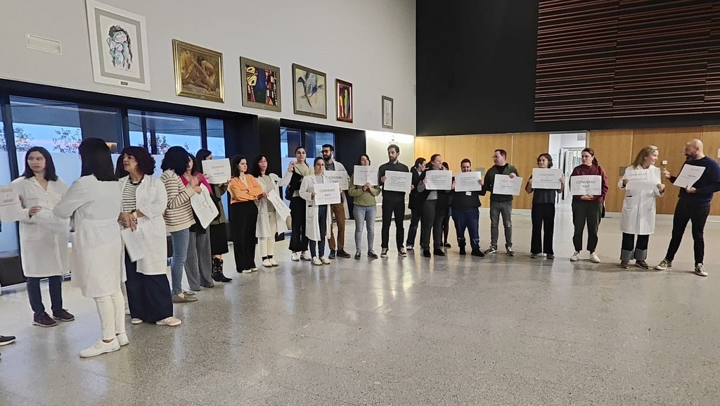 Personal de investigación sanitaria aprovechó el acto de inauguración de la VIII Edición de la Jornada de Encuentro del Instituto de Investigación Sanitaria Galicia Sur, que tuvo lugar hoy en el hospital Álvaro Cunqueiro de Vigo, para reclamar un convenio colectivo único que regule las condiciones laborales en las fundaciones públicas de investigación biomédica (INIBIC, FIDIS y FBGS, con sedes en A Coruña, Santiago y Vigo) y de la fundación pública de Medicina Genómica, con sede en Santiago.