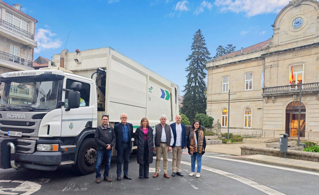 Hoy uno de los vehículos recolectores del Concello de Ponteareas parte rumbo a Quart de Poblet, Valencia, para sumarse a los efectivos existentes. La alcaldesa, Nava Castro, el teniente de alcalde, Juan Carlos González, y el concejal responsable del servicio de recogida de la basura, Jesús Cao, acompañados de la concejala de Infraestructuras Generales, Raquel Bautista, y de representantes de la empresa FCC, desearon buen viaje al equipo.