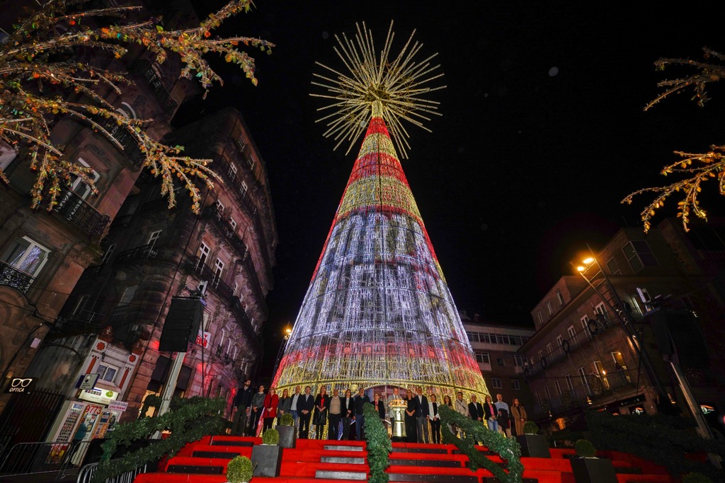 La Puerta del Sol acogió el pasado sábado el acto que da inicio a la celebración navideña en la ciudad de Vigo, con un homenaje a Valencia y a todas las personas afectadas por la DANA. Tal y como valoró el regidor este lunes, el encendido de la iluminación navideña congregó a “miles y miles de personas” en la ciudad que registró una gran afluencia de visitantes en las diferentes calles de la zona central.