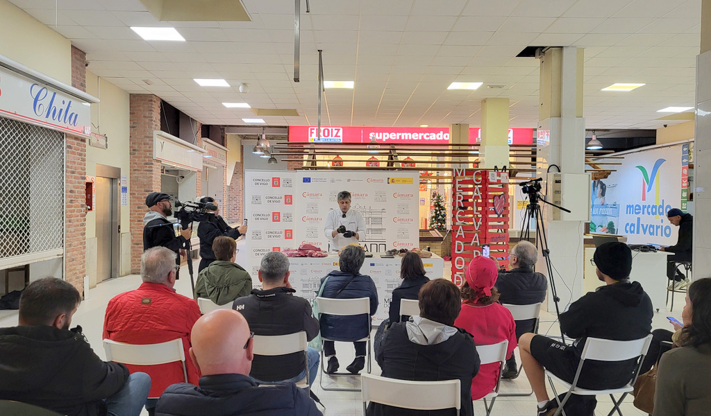 Convertir las piezas de ternera o pollo más modestas en un suculento plato gourmet no tiene ya secretos para la clientela del Mercado do Calvario, que hoy pudo participar en una masterclass sobre los cortes de carne y su uso culinario. Esta acción, que estuvo impartida por el chef José Manuel Mallón, forma parte del Plan de Dinamización Comercial del Mercado do Calvario, que impulsa la Cámara de Comercio de Pontevedra, Vigo y Vilagarcía de Arousa en colaboración con esta plaza municipal viguesa. Las actividades continúan mañana con una segunda masterclass centrada en pescadería.