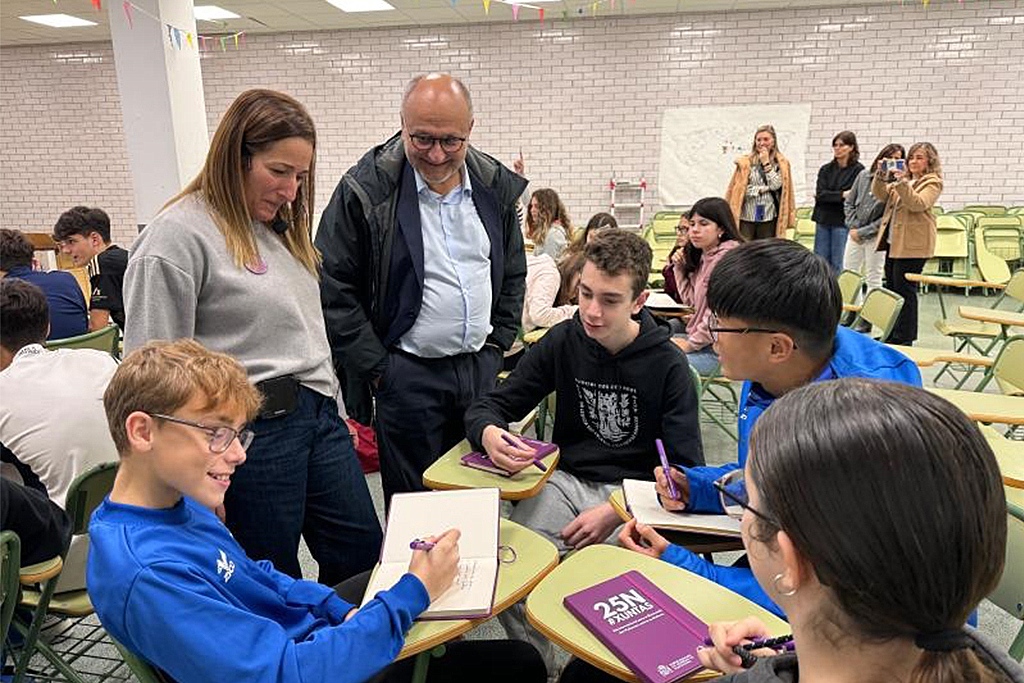 El subdelegado del Gobierno en Pontevedra, Abel Losada, presentó este miércoles en el IES de Valadares un nuevo taller de la iniciativa “Regueifas pola Igualdade”, promovida por la Unidad de Violencia sobre la mujer de la Subdelegación del Gobierno en Pontevedra y dirigida a escolares de la provincia. Esta acción se enmarca en el programa de actividades por el 25N, Día Internacional de la Eliminación de las Violencias contra las Mujeres.