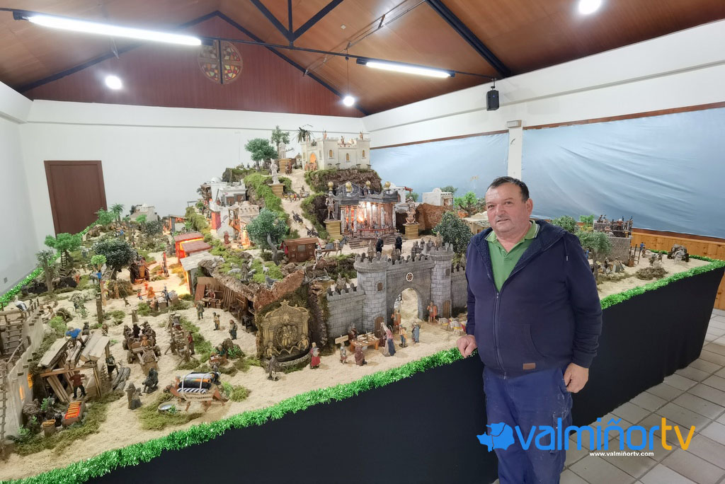 Nando comenzó el montaje del Belén el pasado 13 de noviembre. Desde entonces y hasta esta misma semana, dedicó 12 horas diarias a su construcción. Los materiales utilizados son reciclados, y gracias a los cientos de motores, 1.500 metros de cableado, más de 200 enchufes, bombillas, bombas de agua y fuentes consigue que la maqueta cobre vida. Ocupa unos 45 metros cuadrados y este año cambia de ubicación, del Auditorio del Centro Neural al Centro Parroquial junto a la Iglesia de San Benito.