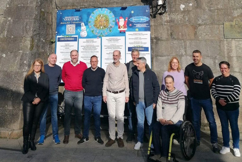 La programación, organizada por las Concejalías de Festejos y Cultura, arranca el jueves 5 de diciembre con el encendido de la iluminación de la Navidad. A las 19:30 horas la batucada Lenha Verde ofrecerá un pasacalles y una vez se enciendan las luces a las 20:30 horas, el grupo Los del Barro actuarán en la Praza do Concello hasta las 22:30 horas.
