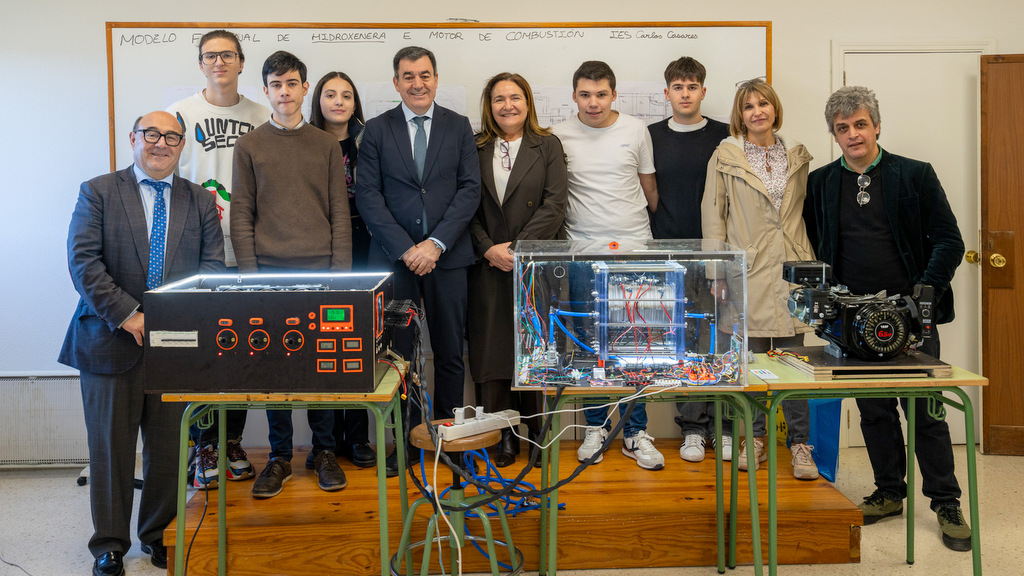 El conselleiro de Educación, Ciencia, Universidade e FP, Román Rodríguez, acompañado por la delegada territorial de la Xunta en Vigo, Ana Ortiz, visitó hoy el IES Carlos Casares de Vigo para conocer el proyecto de un grupo de alumnos que trabajan en el desarrollo de un motor de hidrógeno como alternativa sostenible a los combustibles fósiles. La iniciativa fue reconocida con premios a nivel nacional e internacional.