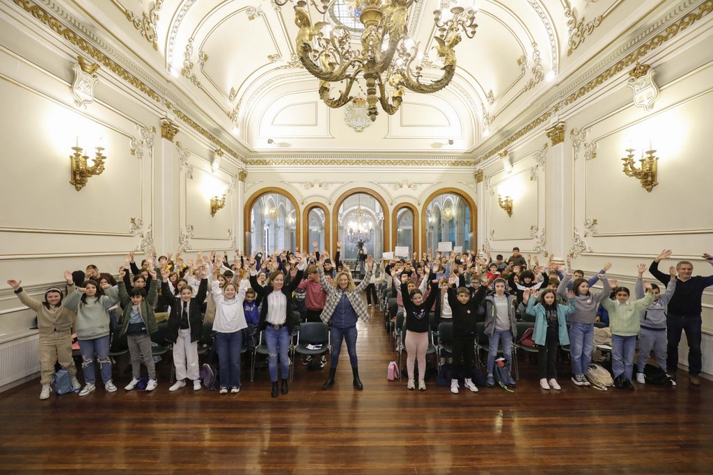 300 niños y niñas de diez centros educativos de Educación Primaria de la provincia que participan en el programa DepoEmprende na Escola presentaron en el Pazo provincial las 12 cooperativas en las que trabajarán a lo largo de este curso para desarrollar sus proyectos colaborativos y fomentar así el emprendimiento. Tras el paso del alumnado de secundaria y de Centros de Educación Especial por la sede del organismo provincial, llegó el turno de los chicos de primaria que pertenecen a diez centros educativos de nueve ayuntamientos de la provincia y que además de recoger los NIF para operar en sus cooperativas también tuvieron la oportunidad de hacer una visita al Museo de Pontevedra.