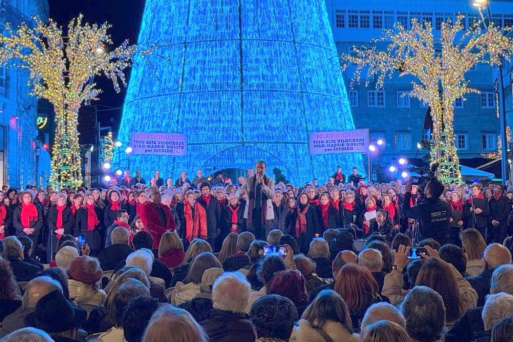 El regidor vigués convocó a la ciudadanía a un concierto reivindicativo, en el que “la conexión de Alta Velocidad entre Vigo y Porto esté finalizada en 2030”, explicó Caballero, añadiendo que es la fecha que “aceptó el gobierno de España”. El otro objetivo es “decir que queremos una autovía en túnel hasta Porriño”, que recordó que “Feijóo le dijo al gobierno de España que no la hiciera”. El concierto, que contará con la actuación de la Federación de Bandas de Música Populares de Vigo, se celebrará el próximo miércoles 11 de diciembre a las 20:00 horas en la Puerta del Sol.