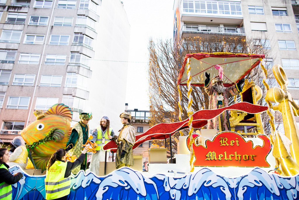 El domingo 5 de enero, Vigo contará, de nuevo, con dos modalidades de cabalgata. La Avenida de Castelao acogerá, de 11:00 a 14:30 horas, la estática, en la que trabajarán 74 personas dentro del dispositivo de seguridad. La cabalgata tradicional, en movimiento, saldrá a las 18:00 horas, con un recorrido de 2,5 km, partiendo de la Avenida de Castelao, y pasando por Plaza América, Camelias y Álvaro Cunqueiro, hasta llegar a la Plaza del Bicentenario. La Cabalgata contará con la participación de Discamino y 7 animaciones.