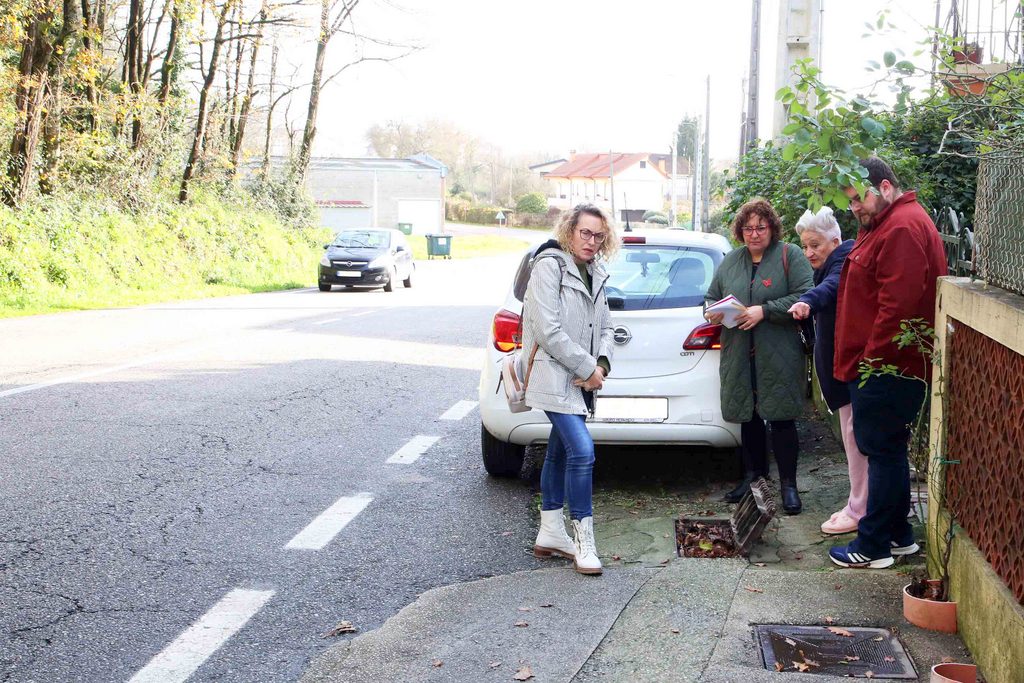 La demanda surge después de una visita realizada por el grupo nacionalista al barrio de A Ponte acompañado de la diputada provincial Manuela Rodríguez. Allí conocieron “in situ” la problemática que están viviendo los vecinos de la zona, que sufren especialmente el deterioro de la carretera provincial y su peligrosidad. Una de las principales deficiencias está en la canalización de las aguas pluviales, en algunos casos inexistente, y en las zonas donde hay viviendas en los márgenes, con tuberías y arquetas totalmente reventadas y taponadas. Al no cumplir su función de drenaje, apuntan, se producen láminas de agua y verdaderos ríos en superficie sobre el asfalto que entran en las casas.