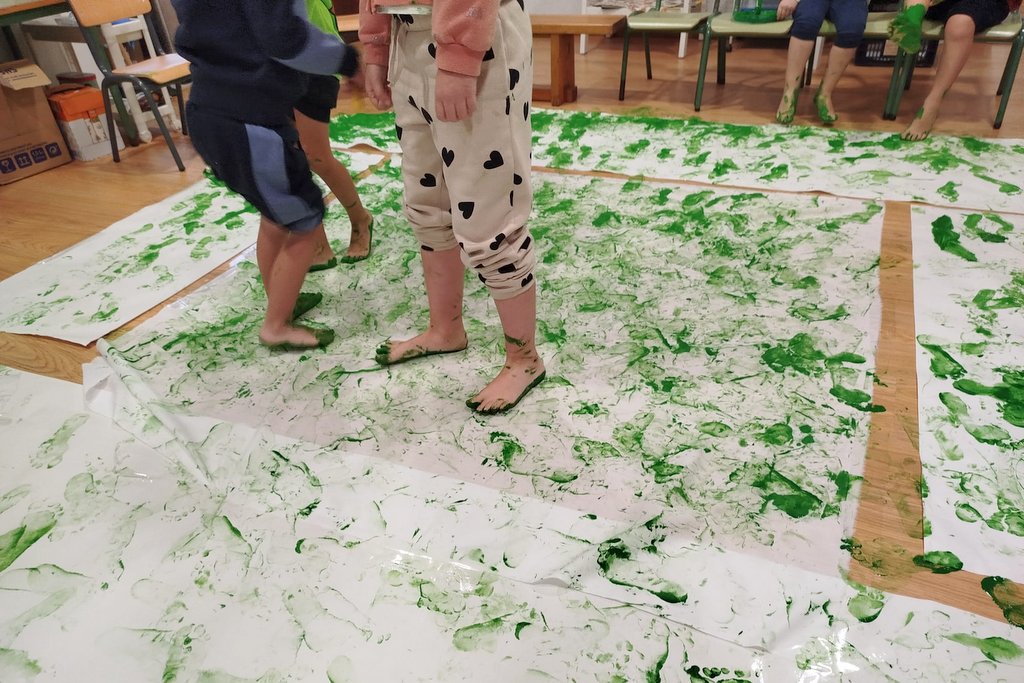 Otro de los retos del CRA de Tomiño es tratar de sacar, en la medida de lo posible, las aulas al exterior, aprovechando al máximo el entorno. En este plano, se inscriben las salidas, excursiones y también la exposición que montan cada año por la paz, en el Mercado Municipal, y que se inaugura el día 30 de este mes, y que permanecerá abierta hasta el 7 de febrero. “Es una instalación artística con telas en las que los niños y niñas imprimen sus huellas, trazando un camino que nos conduzca a la paz”, explica Marta Martínez, coordinadora de la biblioteca y maestra.