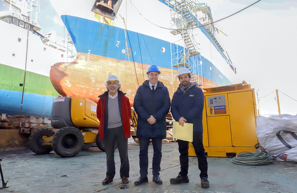 Román Rodríguez conoció las instalaciones de Cardama Shipyard y pudo ver de cerca su trabajo innovador. Cuenta con capacidad para buques de más de 100 metros de eslora y 3.500 toneladas; dispone de seis vías de varada y un muelle de reparaciones propio de 80 metros, así como naves con capacidad para ofrecer todo tipo de servicios.