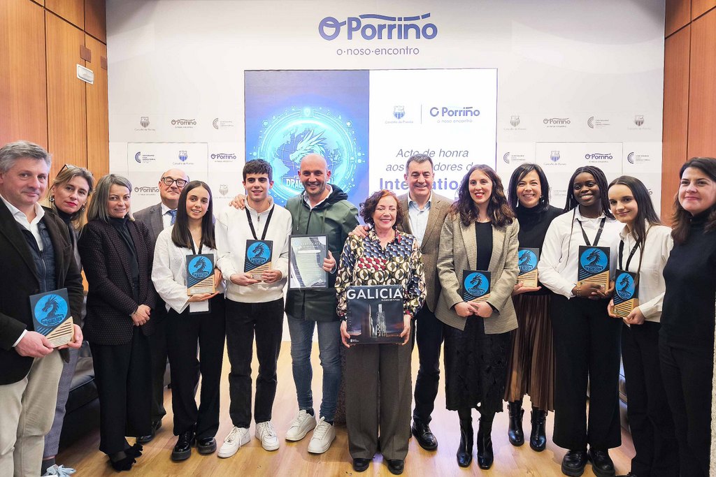 El Salón de Plenos de la Casa Consistorial de O Porriño acogió hoy un emotivo acto de honra a los alumnos y alumnas del IES Ribeira do Louro que se proclamaron ganadores del concurso internacional de emprendimiento International Dragon’s Den, celebrado el pasado 20 de noviembre en Malmö (Suecia). El equipo gallego, compuesto por Beatriz Samunto, Nuria González, Noa Rodríguez y Sergio Lage, se alzó con el primer premio gracias a su innovador proyecto “Greenpocket Solutions – Eco Snack Bag”.