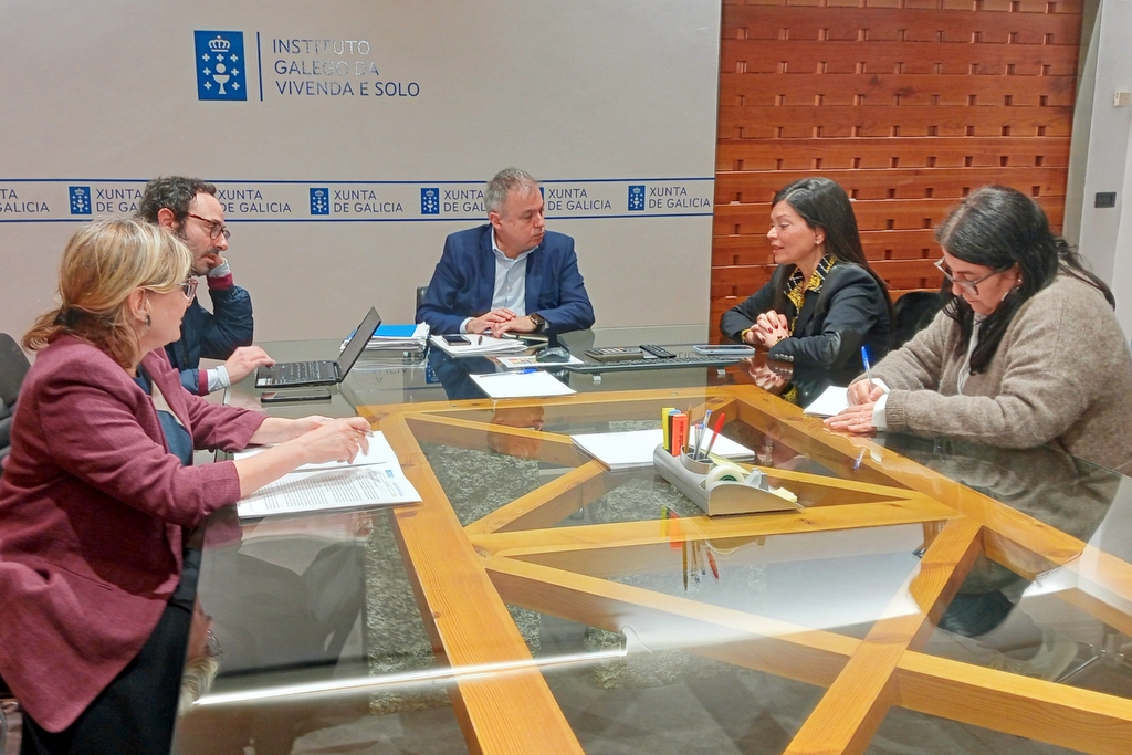 La alcaldesa de Mos, Nidia Arévalo, acompañada por técnicos municipales, se reunió en Santiago de Compostela con el secretario xeral de Vivenda e Urbanismo, Heriberto García Porto, para tratar sobre la solución definitiva para la urbanización de San Antoíño (en la parroquia de Louredo) que requiere de obras de subsanación de las deficiencias de la urbanización, donde se incluyen también la red separativa de pluviales y fecales.