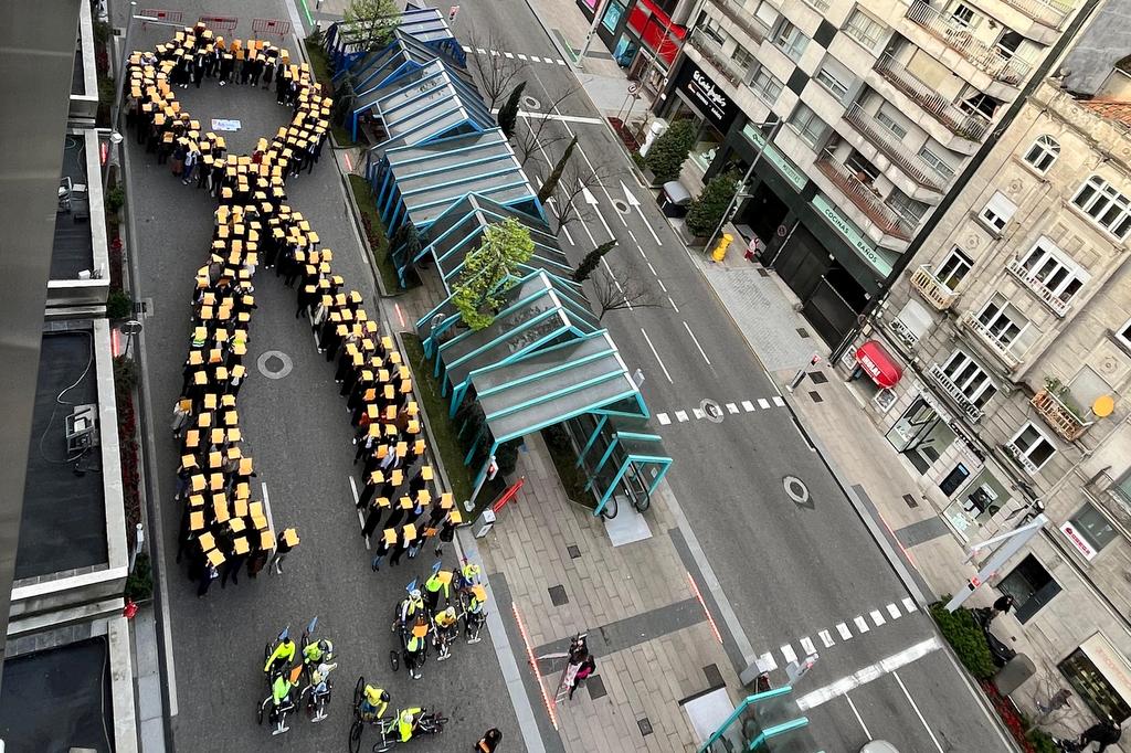 “Este lazo dorado que formasteis hoy es la imagen de la sensibilidad que Vigo tiene hacia esos niños y esas familias que se enfrentan a un momento tan duro y complicado”, señaló Ortiz una vez finalizada la iniciativa en el centro de la ciudad.