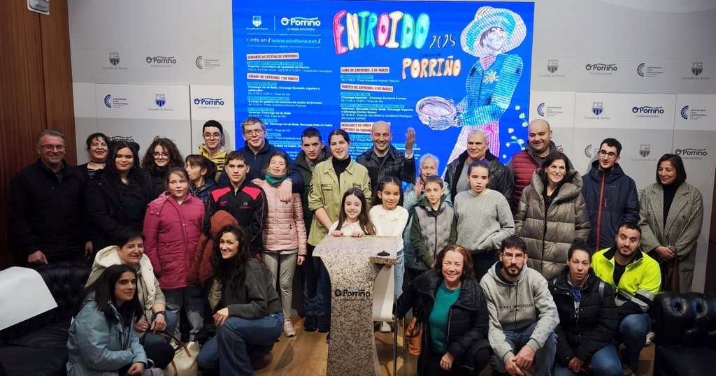 Acompañados de un grupo de escolares, los grandes protagonistas del Carnaval 2025 en O Porriño por ser los encargados de leer el pregón, el alcalde Alejandro Lorenzo y el concejal de Cultura Bienvenido Estévez dieron a conocer con detalle toda la programación que se desarrollará del sábado 1 al miércoles 5 de marzo. “Se celebrarán conciertos, espectáculos y actividades pensadas para todos los públicos, donde no faltarán los ya tradicionales desfiles, de los que participarán 27 comparsas con una comitiva integrada por más de 2.200 personas”, señala el regidor remarcando que “sin duda lo de este año será el más multitudinario de la historia de nuestro Concello y de toda la comarca, por lo que animamos a todos los vecinos y la gente de fuera la que se acerque a O Porriño y disfrute y participe de estas jornadas festivas”.