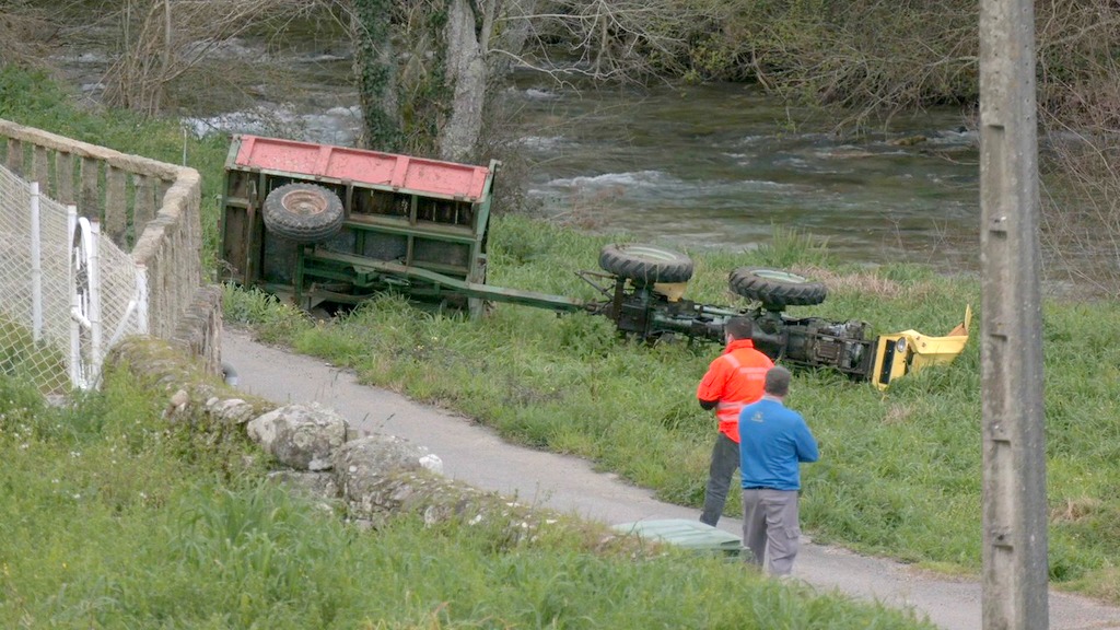 FOTO: TVG // Aparece sin vida el conductor de un pequeño tractor en O Rosal. La persona fue localizada pasadas las cinco de esta tarde junto a una antigua fábrica de peines en Caselas.