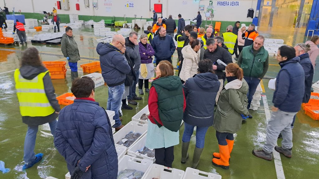 La comitiva presenció de madrugada la subasta de la Lonja y el Mercado, donde pudo comprobar de primera mano su peculiar funcionamiento, tras lo que se trasladó a las oficinas centrales de Praza da Estrela, donde Carlos Botana les explicó las singularidades de la rada olívica como puerto de referencia europeo en materia pesquera y Blue Growth.