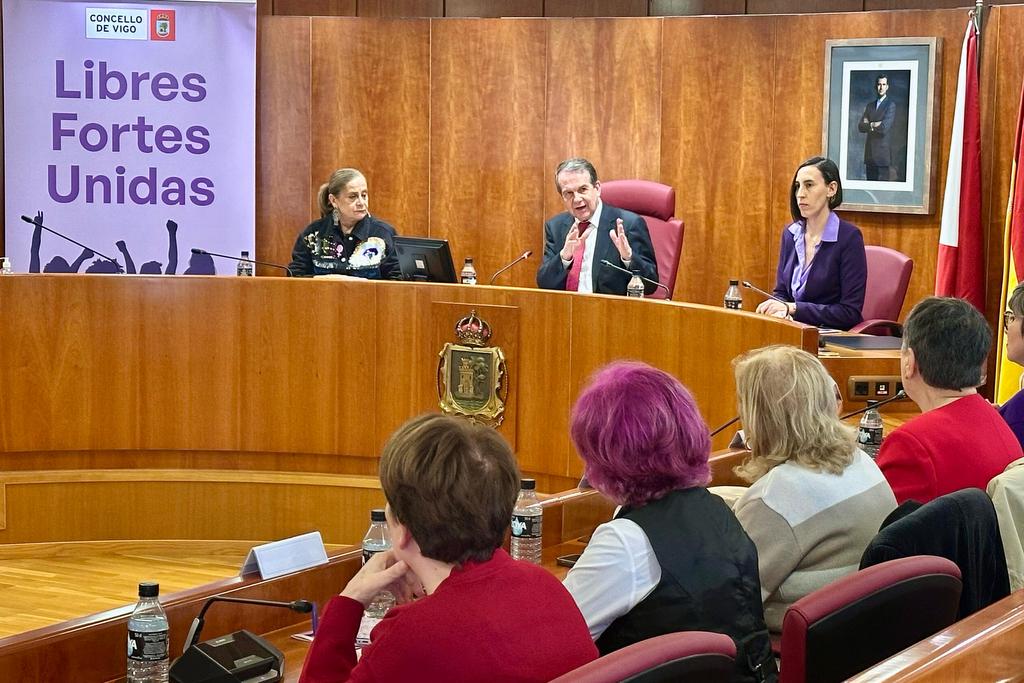 El Pleno específico del Consejo Municipal de la Mujer se celebró este viernes con motivo de la conmemoración del 8 de marzo que este año se desarrolla en la ciudad bajo lo lema “Libres, fortes e unidas”. El alcalde dio la bienvenida a las integrantes del Consejo de la Mujer poniendo en valor su trabajo a lo largo de todo el año y durante tantos años y destacó la importancia de la conciencia política, en un momento en el que se detectan retrocesos en la igualdad. Destacó que “se están produciendo ataques directos al feminismo y a la igualdad que hacen imprescindible que todos y todas afrontemos lo que está sucediendo contra la igualdad, un reflejo de otras formas de entender el mundo”. Esta amenaza de retroceso, añadió, convierte este Pleno en un acto más importante que nunca porque “va a ser una lucha dura y difícil y se nos va a atacar por ser feministas, libres, fuertes y unidas”.