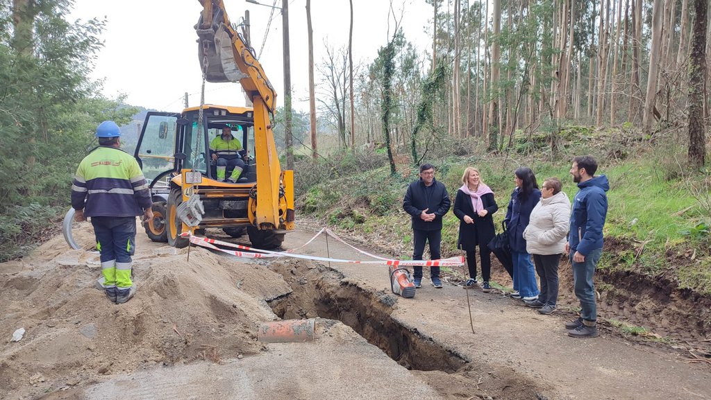Las obras para dotar del servicio de saneamiento al barrio de A Presa avanzan a buen ritmo y según lo previsto. La alcaldesa, Loli Castiñeira, acompañada del concejal de Agenda Ecológica, Marcos Troncoso, y de las representantes de la Asociación Vecinal de Parderrubias, María Rodríguez y Rosario Lorenzo, visitaron las obras para comprobar la evolución de las mismas sobre el terreno.