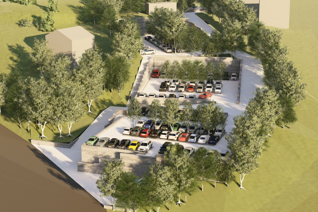 El Concello encargó la redacción del proyecto de construcción que contempla crear una zona de aparcamiento entre vegetación autóctona, articulada en 4 plataformas que discurren en la parcela salvando los desniveles, con la circulación de los vehículos y de los peatones entre las zonas verdes.
