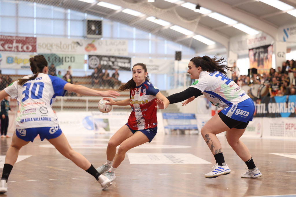 El Mecalia Atlético Guardés no pierde la chispa. Tras la desilusión vivida hace dos semanas en la fase final de la Copa de la Reina, las de Ana Seabra demostraron este sábado que la Liga es lo suyo, y que siguen enfocadas en su objetivo inamovible de hacerse con el título este año. Después de una primera parte en A Sangriña en la que el Guardés no pareció saber encontrar la clave del ataque y en la que llegó a acumular una desventaja de seis goles frente al Caja Rural Aula Valladolid, poco antes del descanso comenzó la remontada local. Con la distancia reducida a cuatro puntos, el equipo local desplegó un auténtico espectáculo de juego en ataque y en menos de diez minutos tras el regreso de los vestuarios consiguió empatar un partido en que ya no volvió a estar por debajo. Destacaron especialmente Elena Amores y Pali Fernández, muy rápidas al contragolpe y con seis goles a las espaldas cada una, y acompañadas por una África Sempere que llegó a encajar otros cinco tantos en la red rival. Estela Carrera también fue clave para frenar a las vallisoletanas. Con esta victoria el Mecalia consigue resarcirse de la que fuera su segunda derrota de la temporada y suma dos puntos importantes que le permiten encarar con seguridad la recta final de la Liga.