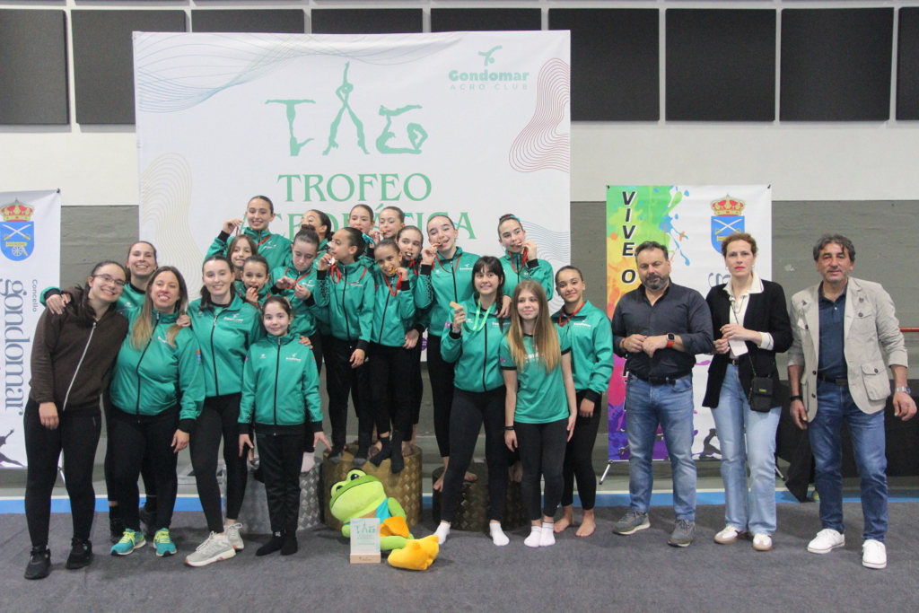 El pasado sábado se celebró en Gondomar la segunda edición del campeonato “Trofeo Acrobática Concello de Gondomar” donde participaron 205 gimnastas de distintos clubes gallegos: Escola Ximnasia Burgas de Ourense, Ximnasia Acrobática Compostela de Santiago de Compostela, Treboada de Pontevedra, Flic Flac de Vigo, Acro Club Nigrán y Gondomar Acro Club.