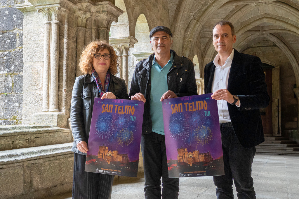 El diseño, que viene de ser presentado, anuncia la celebración de las fiestas patronales de Tui del 19 al 28 de este mes de abril. El alcalde, Enrique Cabaleiro, y la concejala de Cultura, Sonsoles Vicente, felicitaron al autor por su trabajo que será la imagen de las fiestas de San Telmo de este 2025.