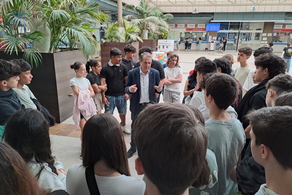 El alcalde explicó este jueves a los 40 alumnos de segundo de la ESO del IES Castelao, que participan en el programa educativo “Visita o teu Concello”, la trascendencia de conocer el funcionamiento de la administración municipal por la repercusión de los servicios que presta a la ciudadanía y por las numerosas decisiones que se adoptan todos los días para mejorar la calidad de vida de los vigueses y viguesas. El estudiantado recorre las principales dependencias municipales, desde el Salón de Plenos a la sala de control de tráfico, entre otras dependencias.