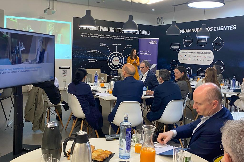 El Círculo de Empresarios de Galicia acogió un desayuno de Forvis Mazars sobre las claves sobre contratación pública. Presentado por Diego Maraña, de la Junta Directiva del Círculo, y por Sara Cerqueira, de la delegación de Vigo de la compañía; los expertos en Derecho Público, Administrativo y Regulatorio Germán Alonso-Alegre, Roberto de la Calle y Antonio Perales, fueron los encargados de abordar de forma práctica las situaciones y casuísticas más habituales.