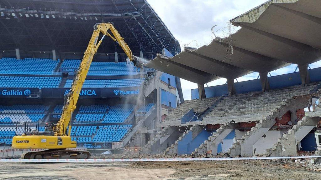 El alcalde dio cuenta este miércoles de la evolución de la construcción de la nueva Grada de Gol del Estadio Municipal de Balaídos, donde avanza la destrucción de la vieja cubierta con un “protocolo muy definido y delicado” para mantener el equilibrio con respecto a los pilares sin que se produzca ningún derrumbamiento.