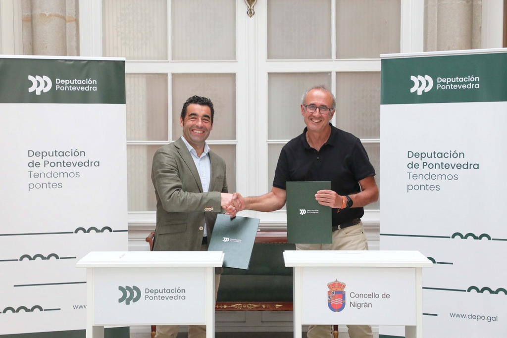 El presidente de la Diputación de Pontevedra, Luis López, firmó este martes el convenio de colaboración con el alcalde de Nigrán, Juan González, para la financiación del proyecto de reforma interior y mejora de la eficiencia energética de la antigua Casa Consistorial al amparo del Plan Provincia Extraordinaria – Plan Extra. Un acuerdo firmado en el marco de un novedoso plan de inversiones del gobierno provincial que moviliza hasta 38 millones de euros entre los Concellos de menos de 50.000 habitantes de la provincia para ejecutar proyectos estratégicos. En el Pazo provincial, López y González sellaron un acuerdo a través del cual el organismo provincial aporta 653.900€, el 75% del total, a un proyecto valorado en 871.900 €.