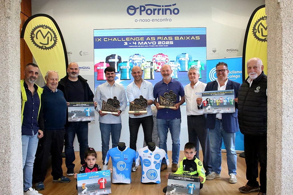 El Concello de O Porriño fue escenario esta mañana de la presentación oficial del IX Challenge As Rías Baixas, una de las citas más importantes del ciclismo gallego, que reunirá a doscientos corredores de las categorías máster y juvenil durante el fin de semana del 3 y 4 de mayo. La prueba, organizada por el club ciclista Master da Louriña, recorrerá los municipios de Mos, Ponteareas y O Porriño en un recorrido exigente que combina tramos en línea y contrarreloj.